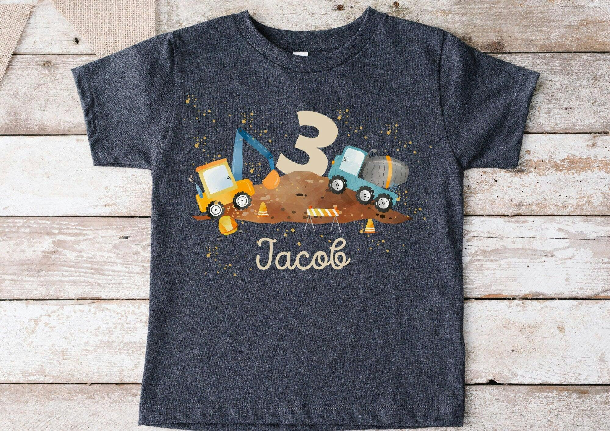 Mach’s persönlich: Dieses Baustellen-Bügelbild mit Name & Zahl macht jedes Shirt zum Highlight für kleine Bauprofis!