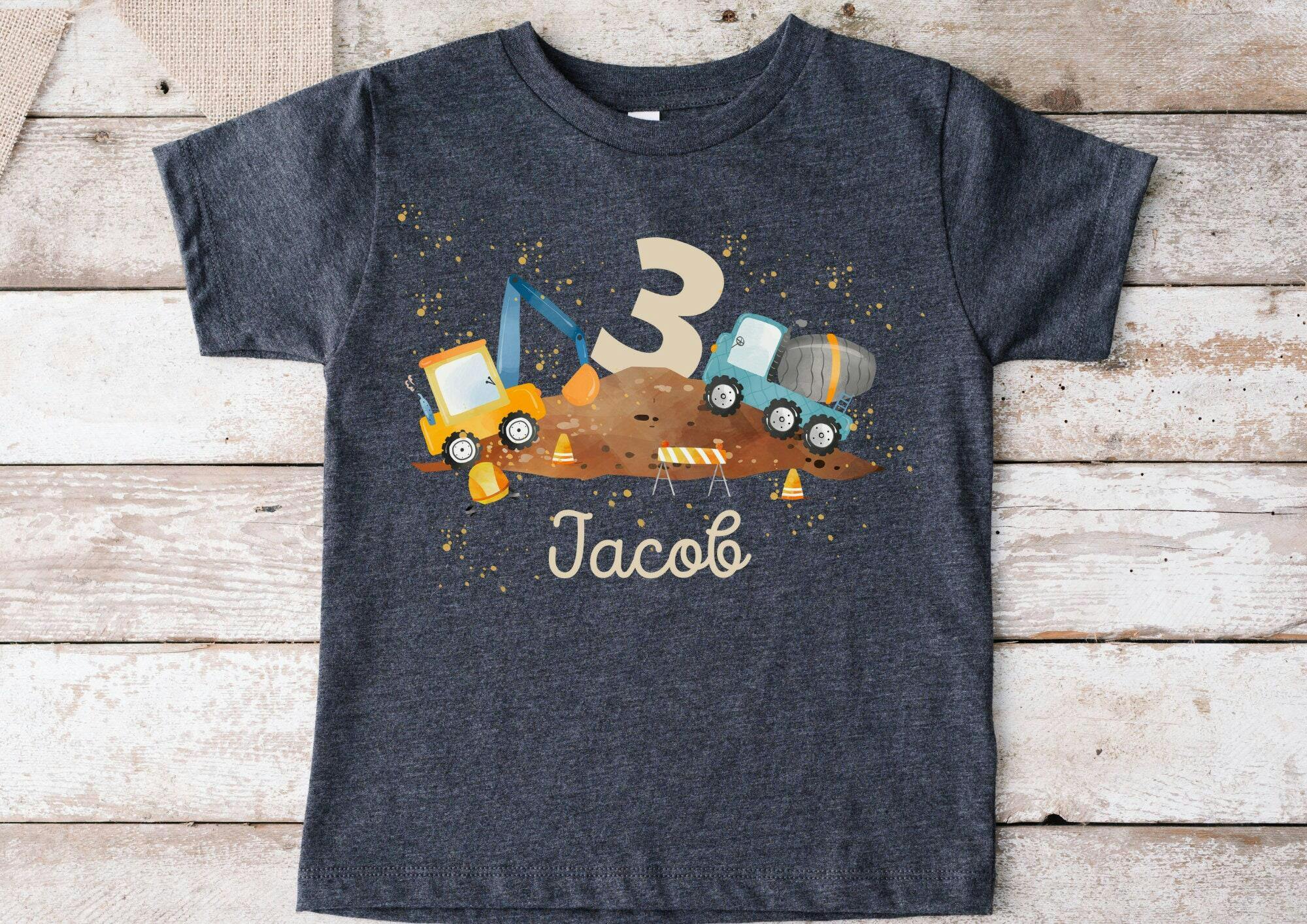 Bügelbild Baustelle mit Name und Zahl – personalisiertes Aufbügler Motiv mit Bagger & Betonmischer für geburtstag