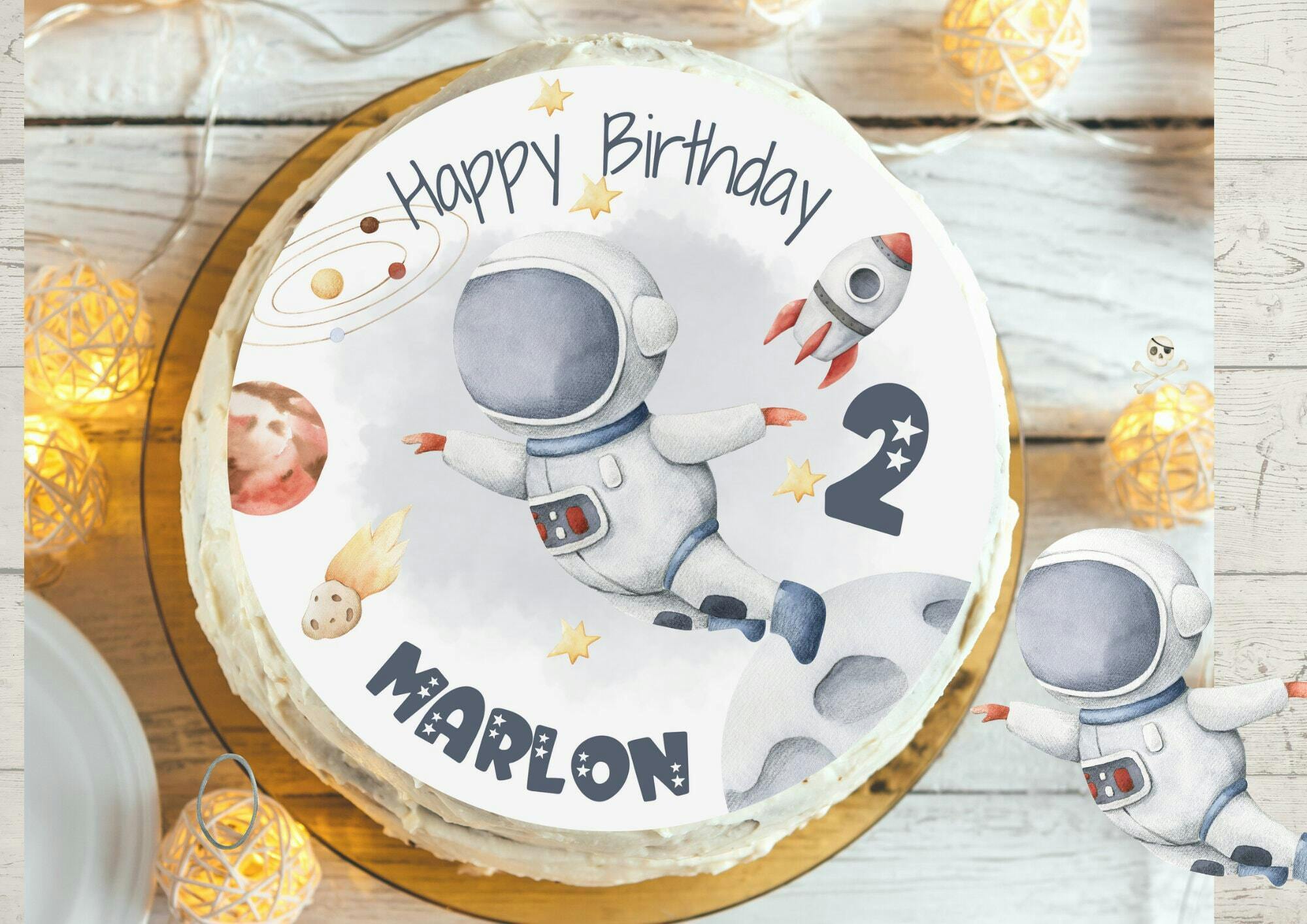 Cake topper Fondant birthday astronaut space space planet rocket space station