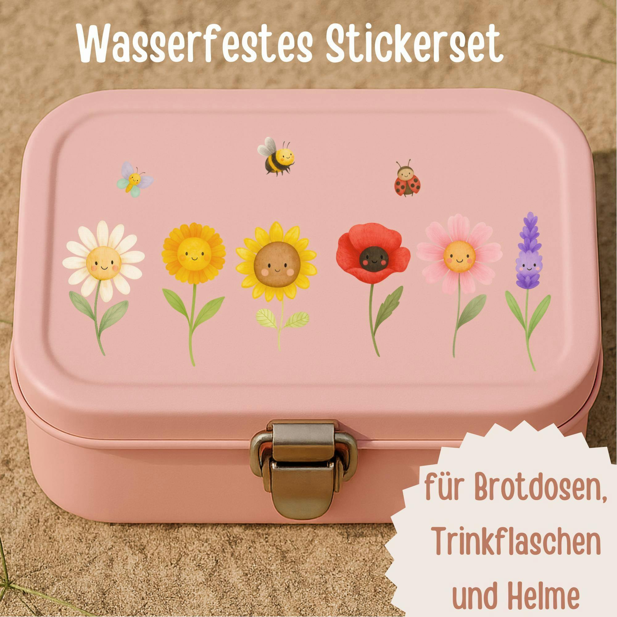Sticker Blumen – wasserfest & spülmaschinenfest – A6 – Sonnenblume, Lavendel, Gänseblümchen – Brotdose, Kita, Geschenk