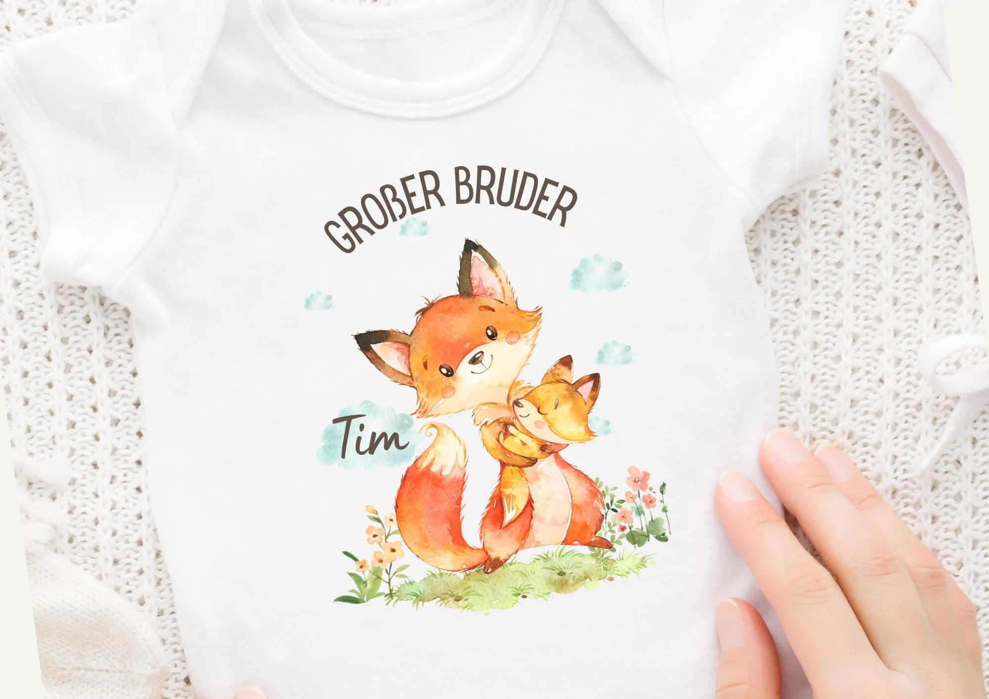 Bügelbild mit Wunschname und Alter personalisiert Fuchs Kleiner Bruder Großer Bruder Schwester