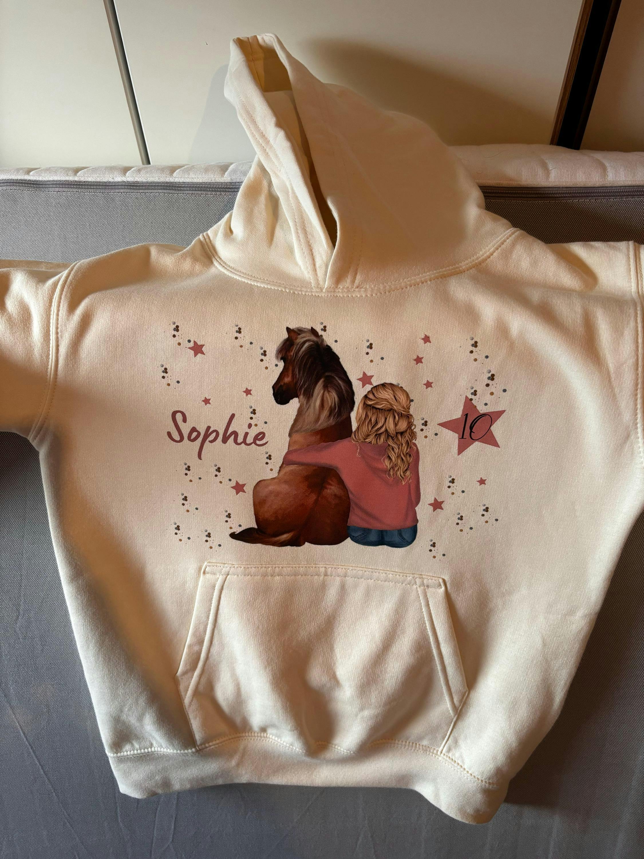 Bügelbild mit Wunschname und Alter personalisiert Pferd Pony Reiter
