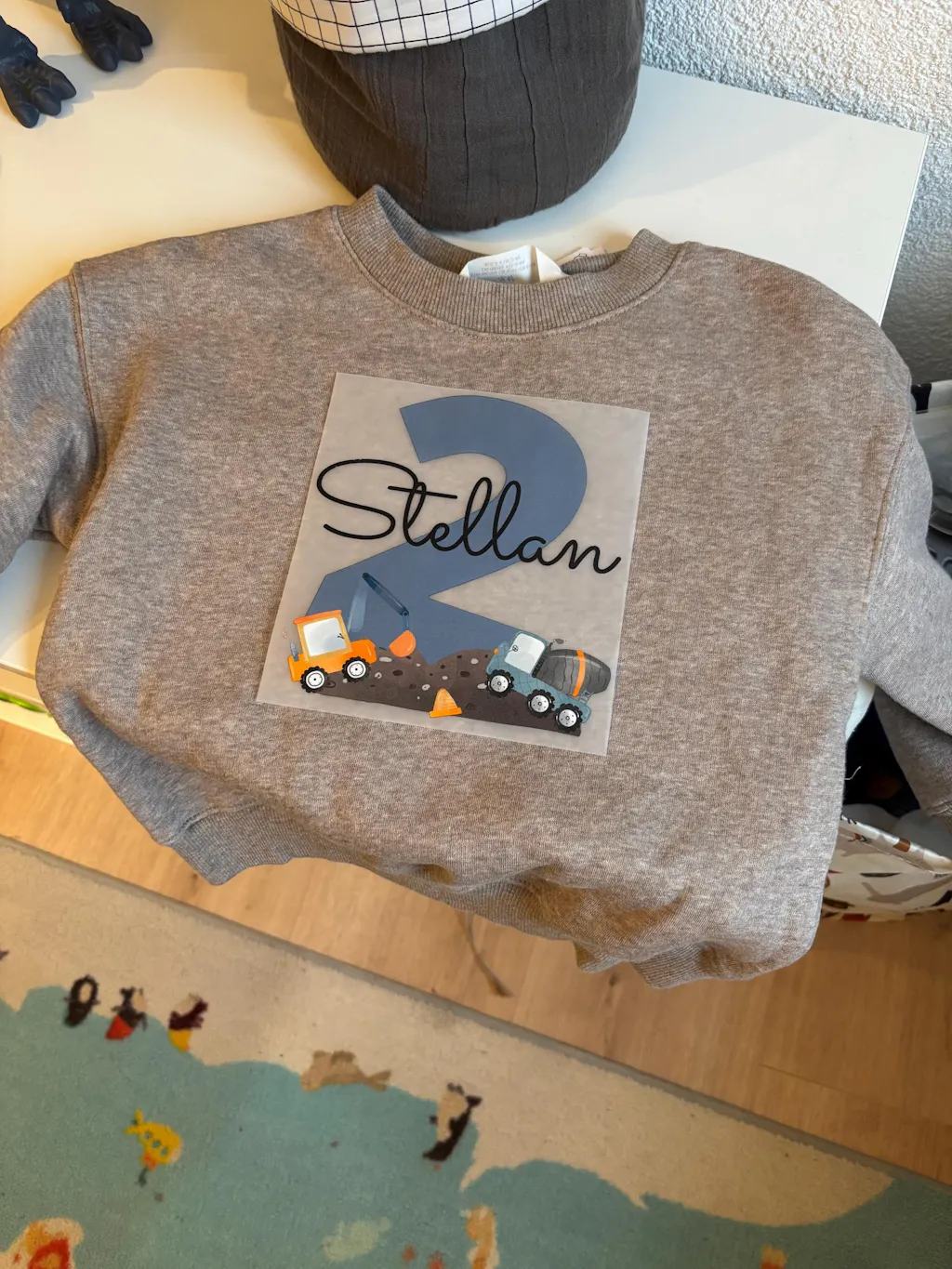 Bügelbild mit Wunschname & Wunschzahl (z. B. „Liam – 2 Jahre“)