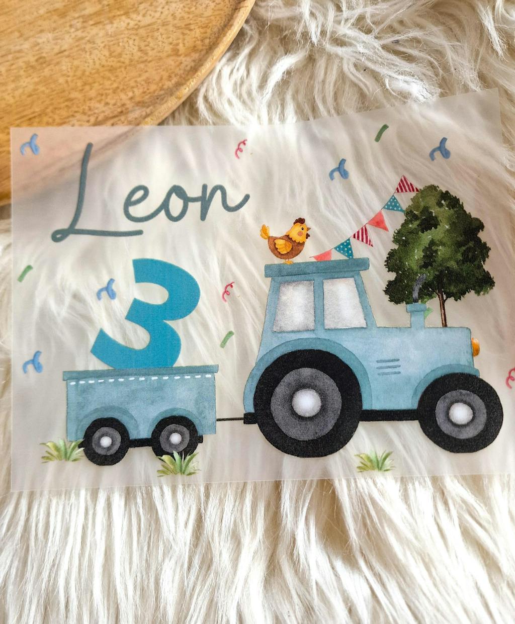 Feiere den besonderen Geburtstag deines kleinen Traktor-Fans mit einem einzigartigen, personalisierten Bügelbild!