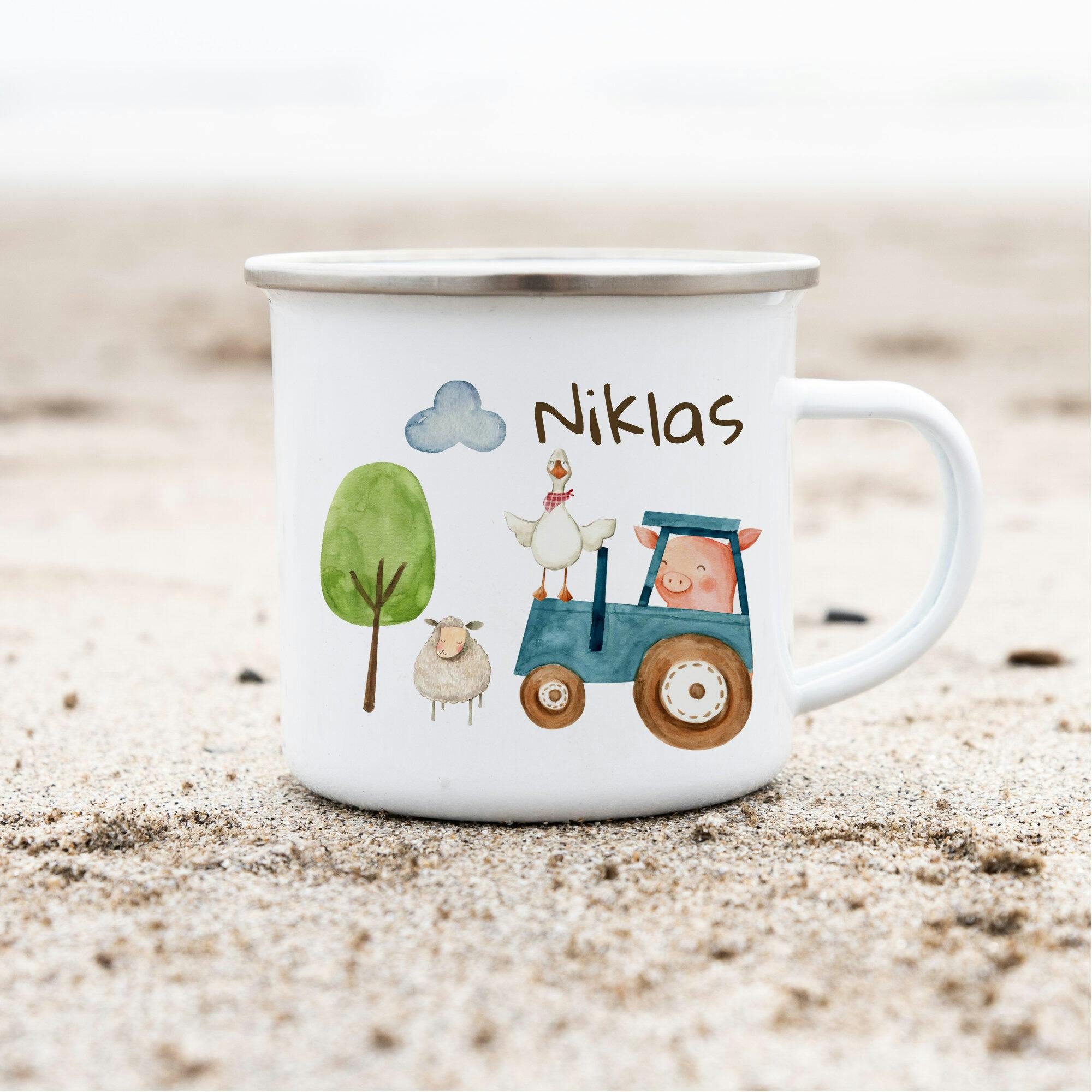 Emailletasse mit Namen personalisiert Traktor Trecker Bauernhof