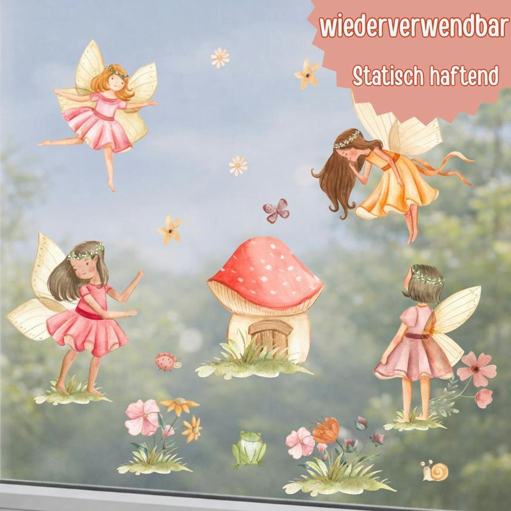Fensterdeko Frühling – Fensterbild mit Feen, Blumen & Naturmotiven, frühlingshafte Feen-Fensterdeko