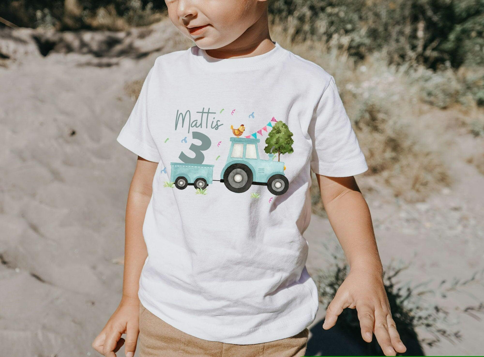 Geburtstagsshirt Traktor personalisiert – mit Name & Zahl – Shirt Bauernhof – Geschenk zum 1.–6. Geburtstag – 80–128