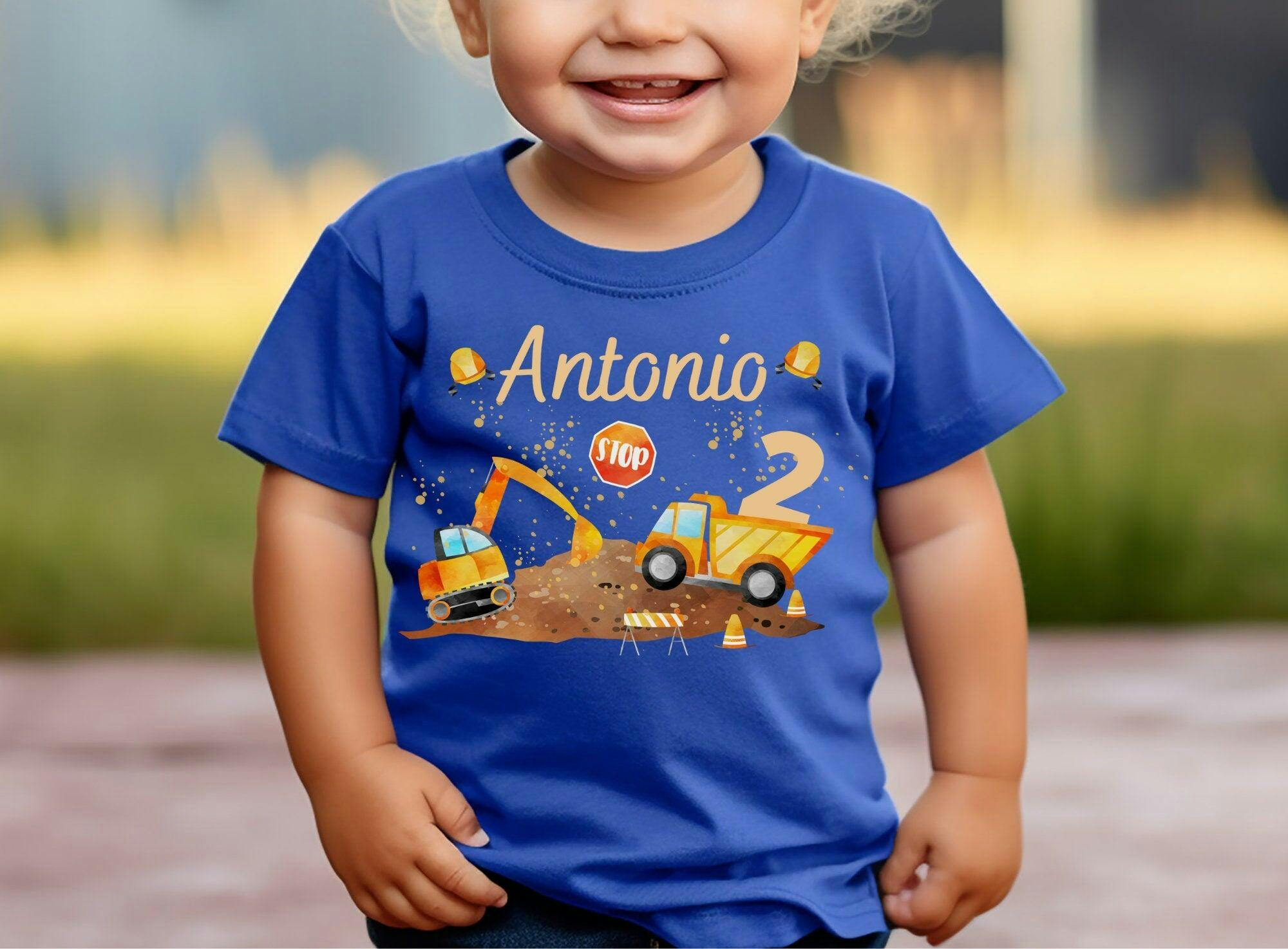 Geburtstagsshirt personalisiert mit Name & Zahl – Bagger Shirt für n – Baustellengeburtstag Outfit 2 3 4 Jahre