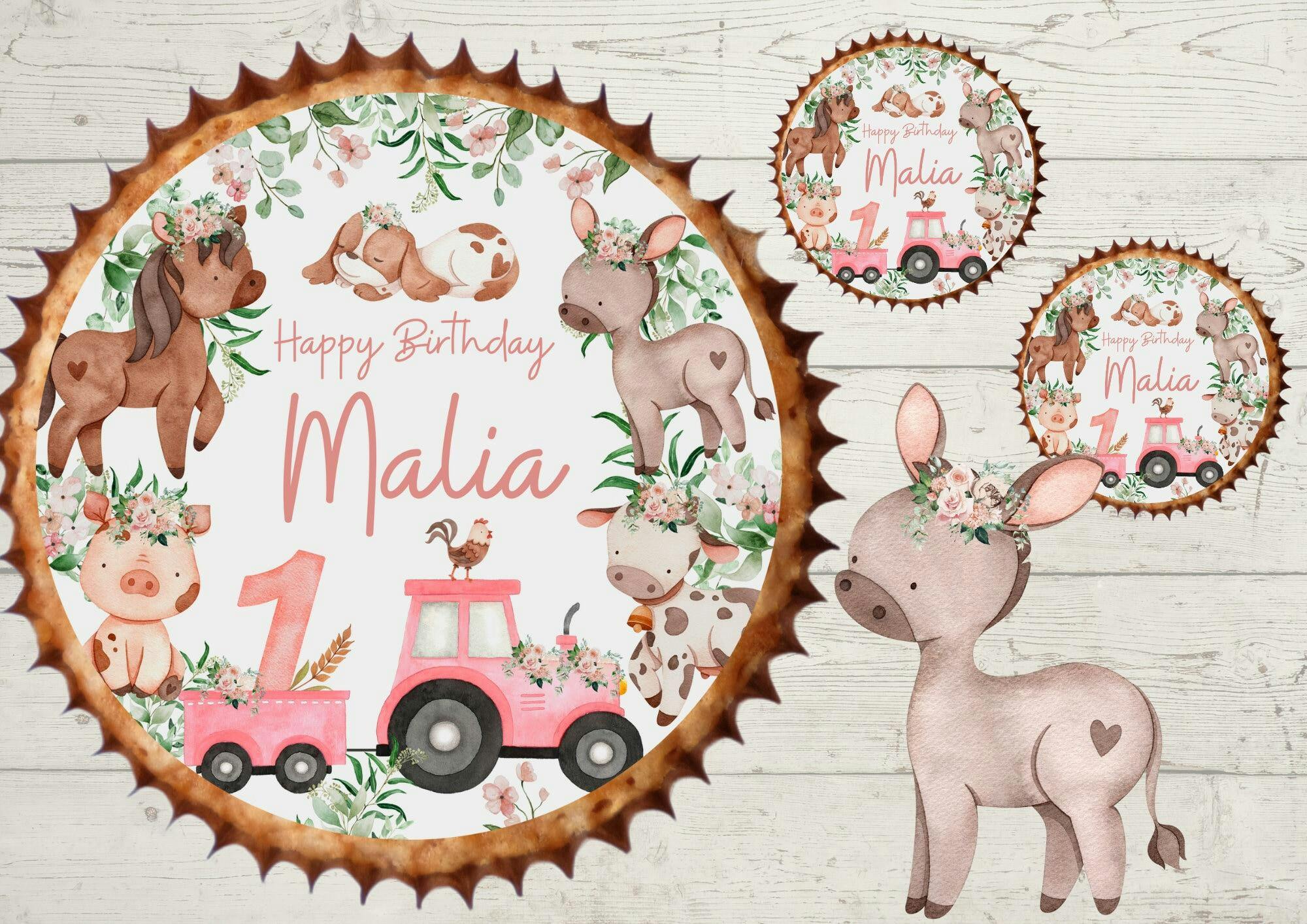 Muffinaufleger Fondant Geburtstag Traktor Trecker Bauernhof Bauernhoftiere rosa Pferd Esel Kuh