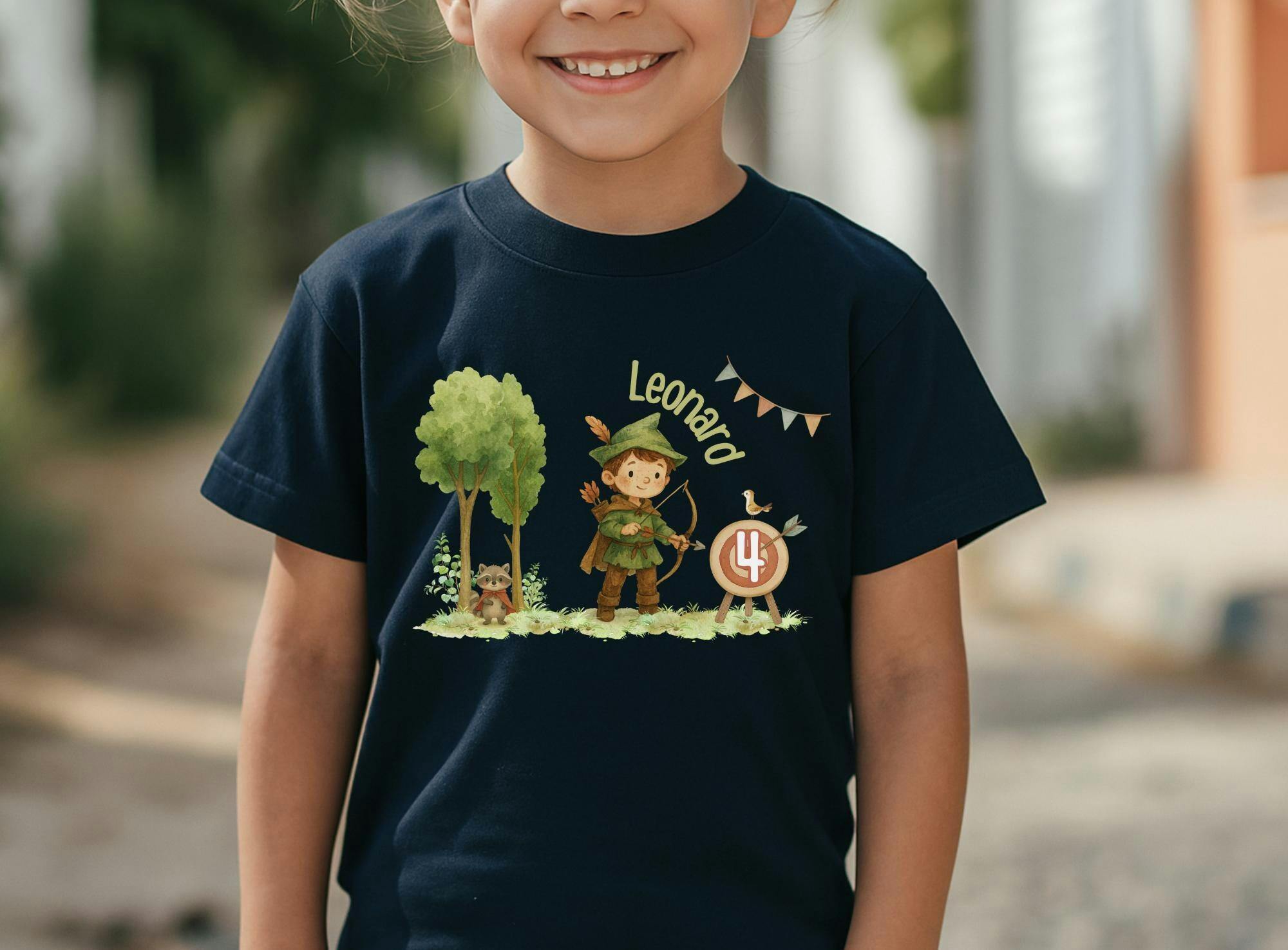 Robin Hood Geburtstagsshirt mit Zahl & Name – Waldabenteuer – Mittelalter Mottoparty – Geschenk für kleine Helden