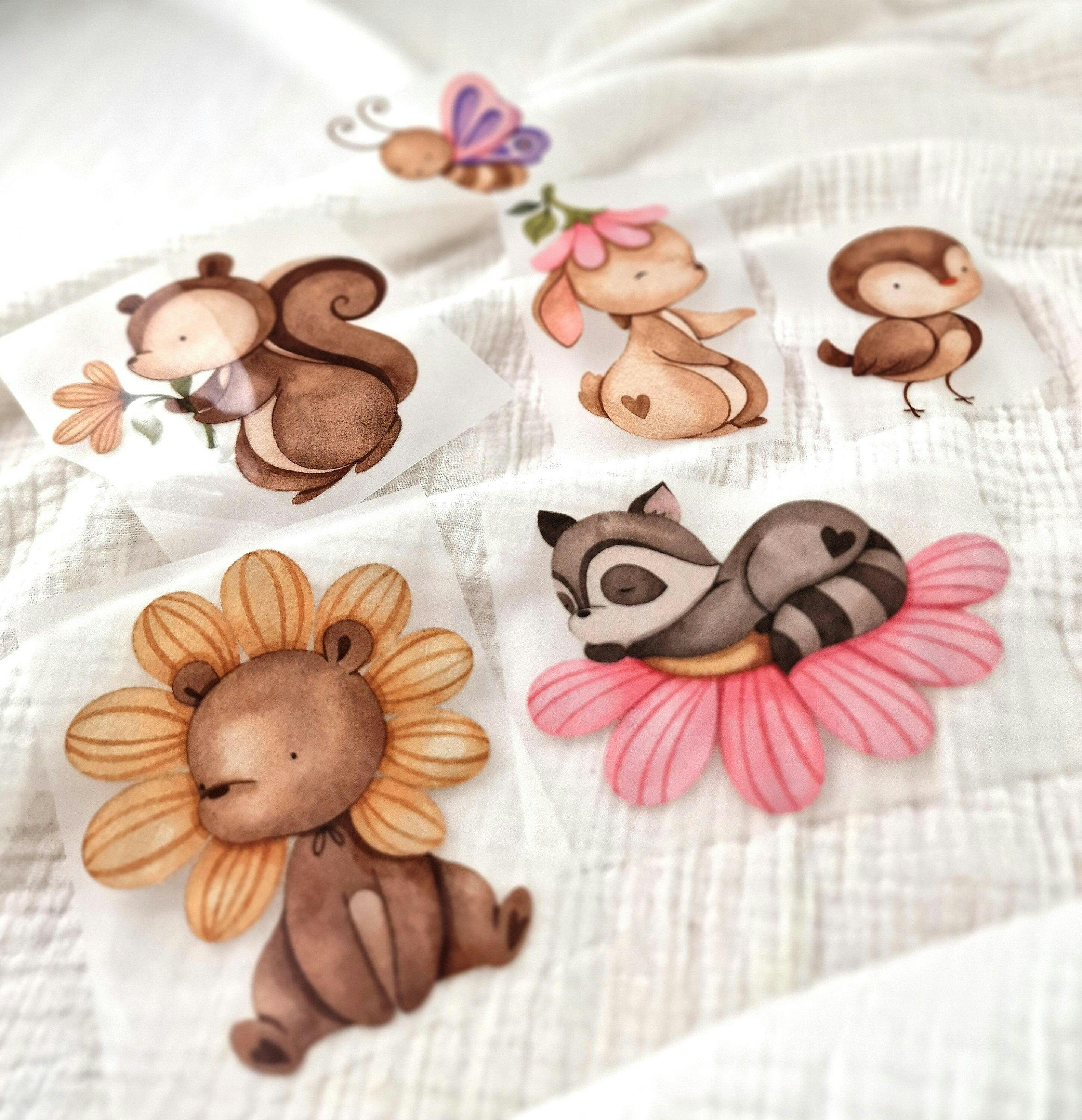 Set Bügelbild Applikation zum Veredeln von Shirts Hosen Kleidung DTF Druck Applizierung Bär Hase Vogel Frühling