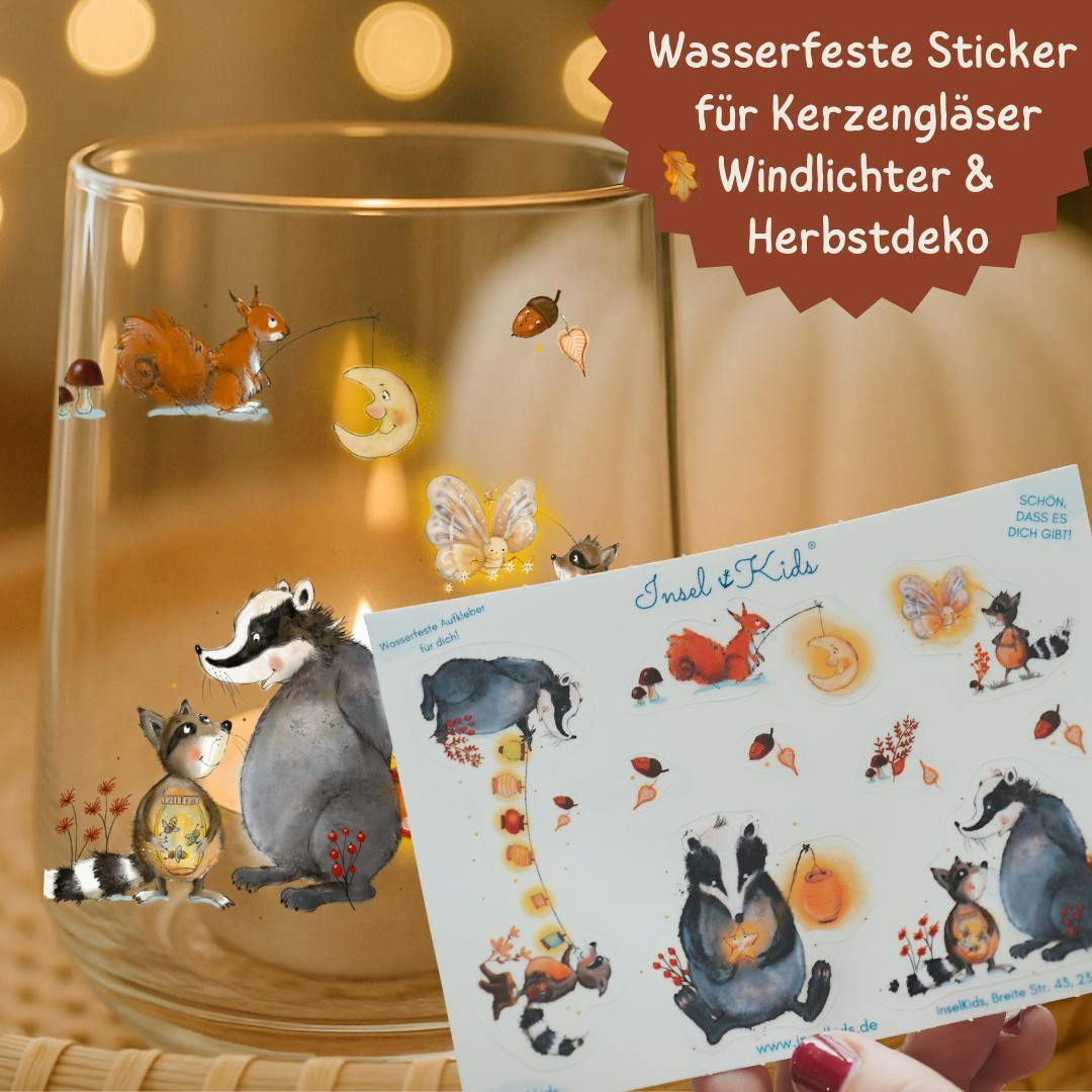 Herbstliche Sticker 🍂 wasserfest & DIY-freundlich für Kerzengläser, Windlichter & Glasdeko – Waldtiere für deine Herbstdeko.