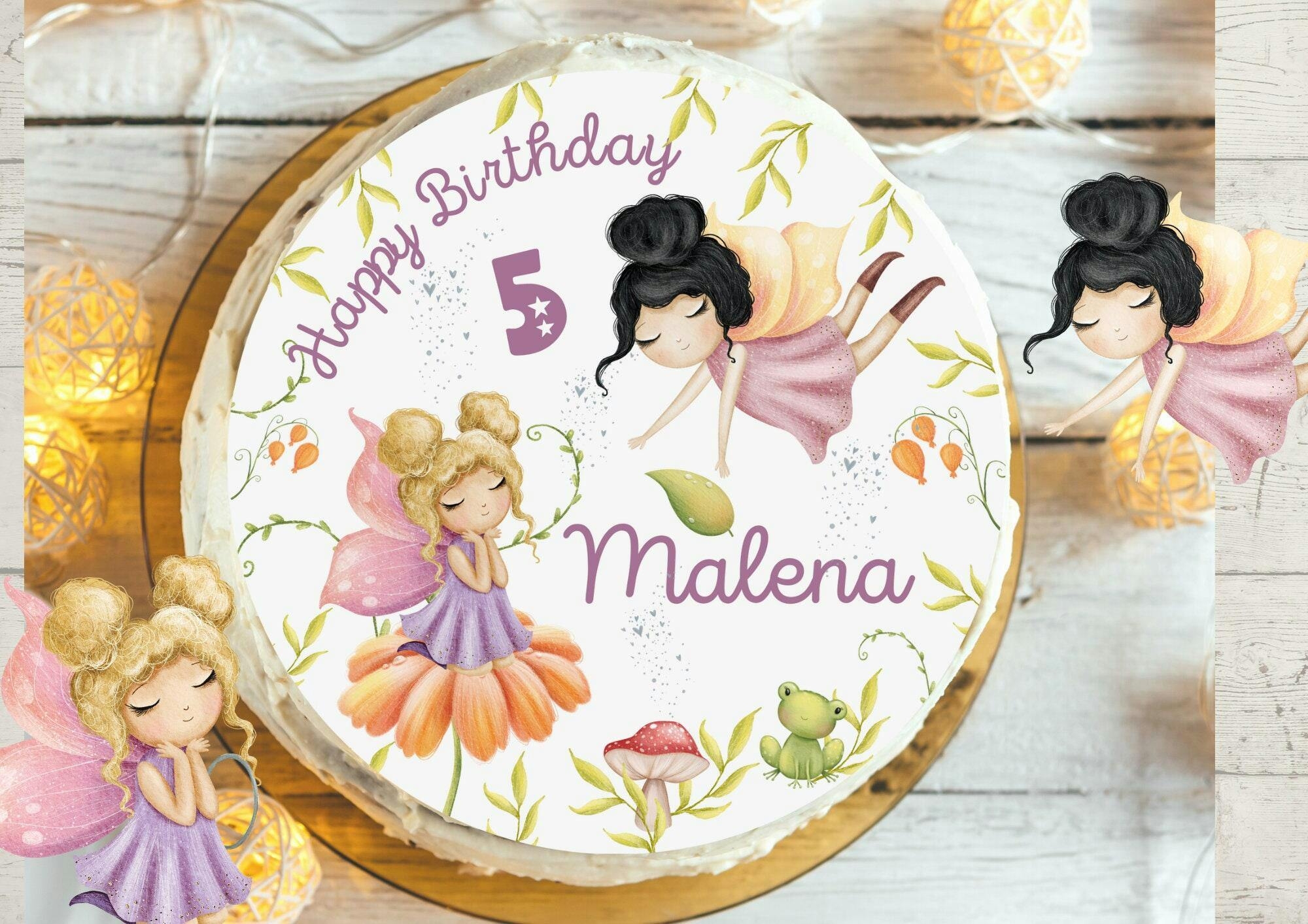 Tortenaufleger Fee & Elfe – Essbarer Fondant für – Geburtstag Deko, Ø 20 cm, runder Tortenaufleger