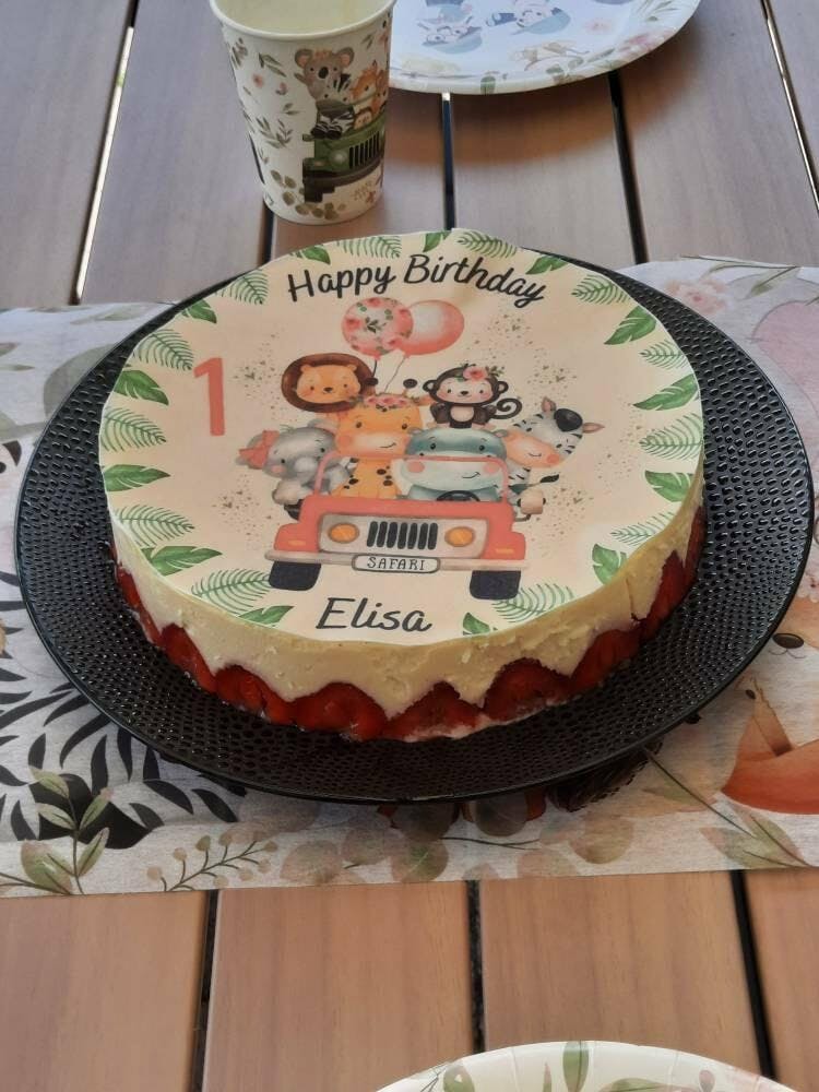 Mit diesem liebevoll gestalteten Tortenaufleger wird jeder Kindergeburtstag zum Safari-Abenteuer – direkt auf dem Kuchen!