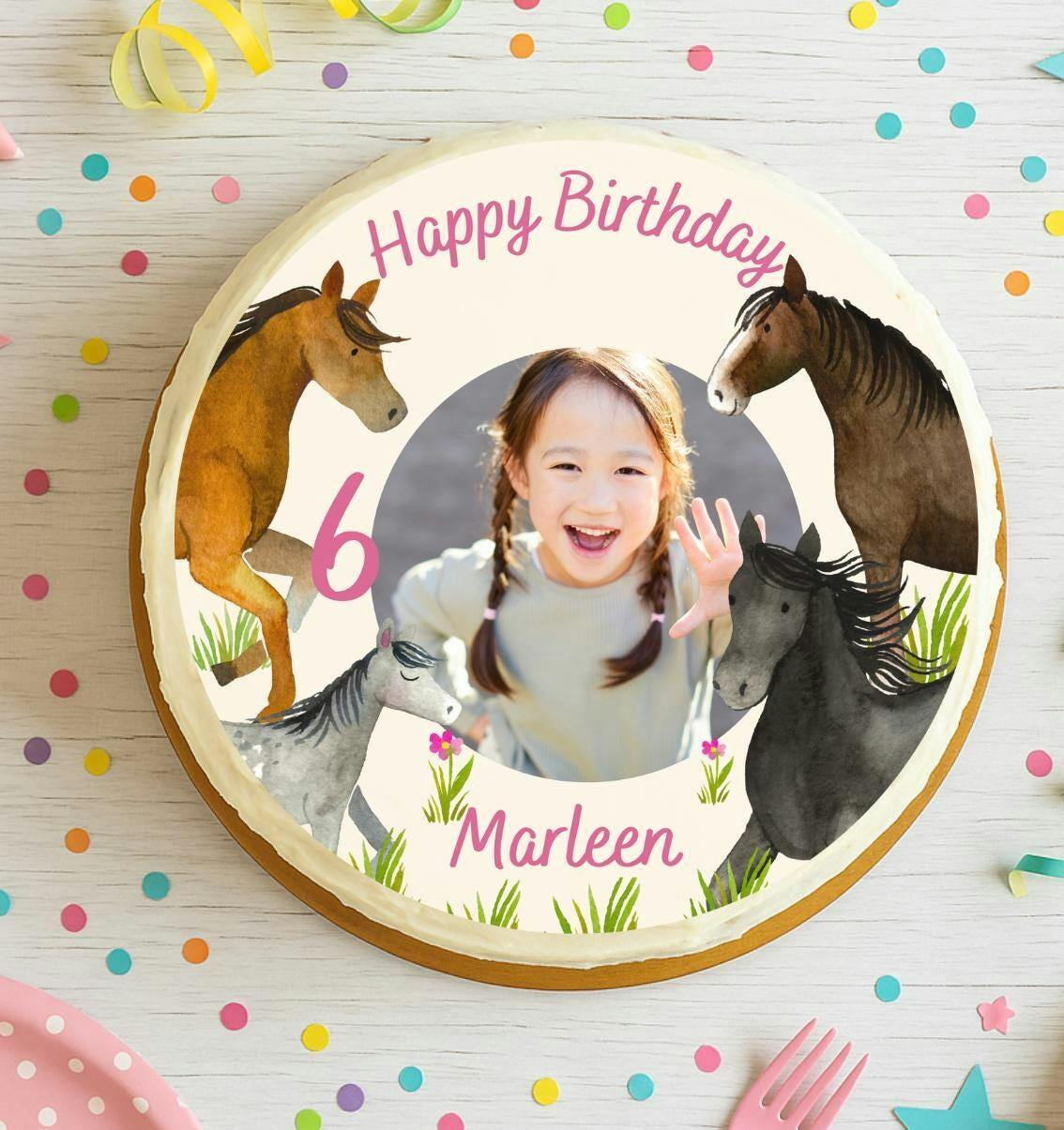 📸 Tortenaufleger mit Foto, Zahl & Pferden – ideal für den Geburtstag pferdebegeisterter Mädchen ab 3 Jahren.