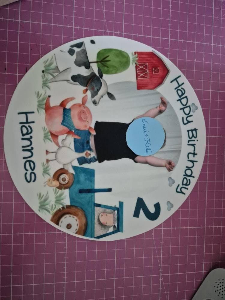 Essbarer Tortenaufleger mit Traktor, Tieren, Foto, Name & Alter – Ø 20 cm – zum Ausschneiden – perfekt für Jungengeburtstag & Bauernhof-Motto.